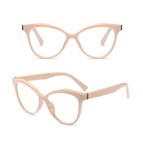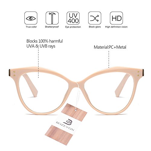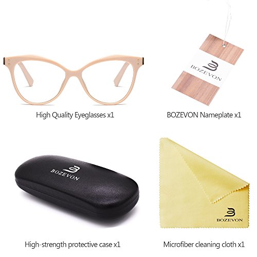 BOZEVON Donna Moda Classico Montatura Occhiali da Vista Occhiali con Lenti Trasparenti Occhio di gatto Festa Occhiali Cachi