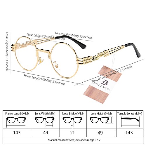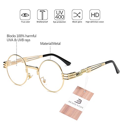 BOZEVON Retro Steampunk Style ispira Rotondi Metal Circolari Occhiali da sole per le Donna e gli Uomo Oro-Trasparente