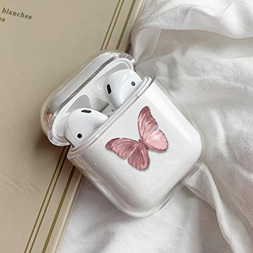 Bprtcra Compatibile con AirPods 1 & 2 custodie, AirPods 2 Case Trasparente Ultra Sottile Motivo Farfalla Cover Cover in plastica Rigida per AirPods 1/2 (Type N)