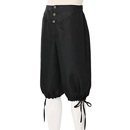 BPURB Pantaloni Uomo da Vichingo medievali rinascimentali Vitello-Lunghezza Larp Pirata Cosplay Costumi Posteriore con Lacci Pantaloncini, Nero, L