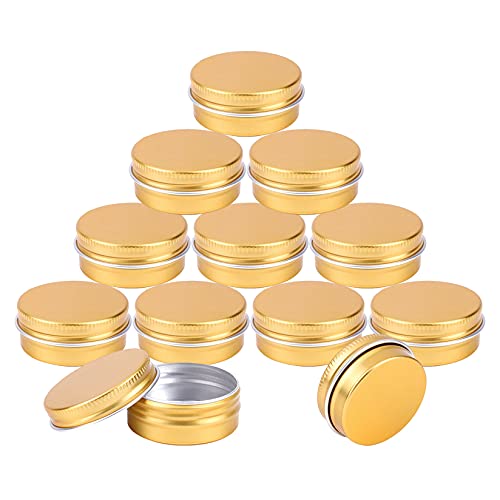 BPZXL 24 Pezzi Rotonda Contenitore in Alluminio da 15ml Oro con Tappo a Vite Vaso Barattolo Cosmetico Contenitori per Balsamo DIY Labbra Cosmetici Candele