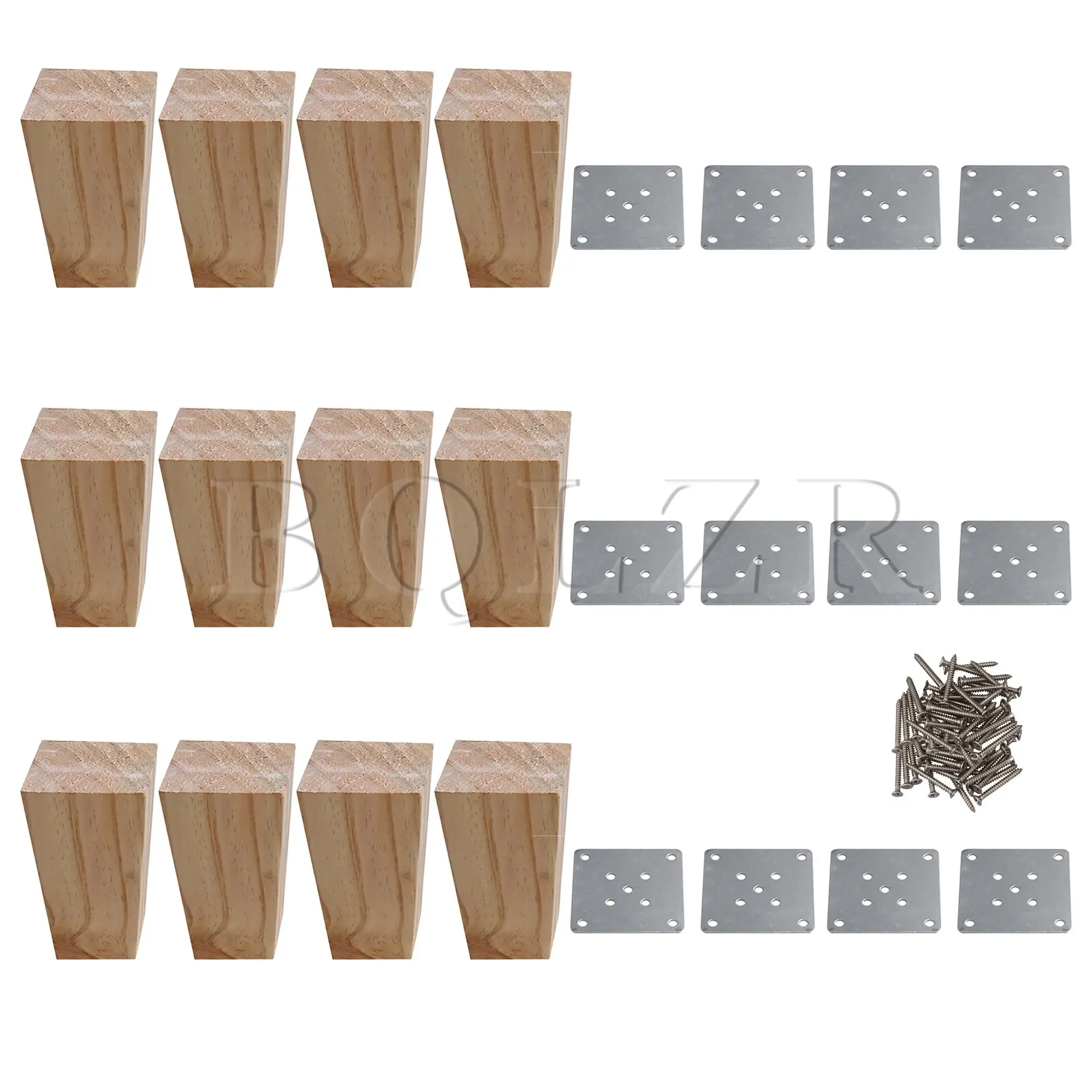 BQLZR 12pcs Wood Color Wood Trapezoidal Sofa Feets Furniture Legs 6x6x12cm