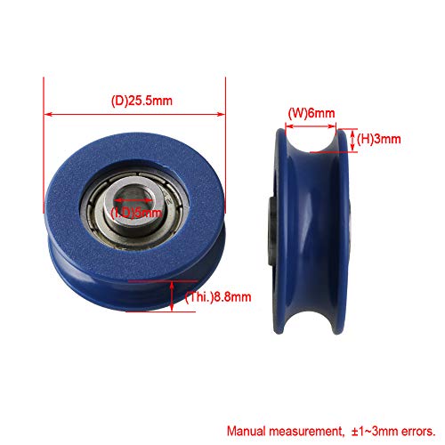 BQLZR 25.5x5x8.8mm 625ZZ U-Type Guida a sfere con cuscinetti a sfere Ruote per puleggia Rullo portante 26KG per porta finestra Stampante per cabinet Confezione da 4