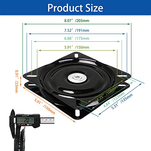 BQLZR 6 pollici A3 acciaio piatto nero cuscinetto a sfere girevole giradischi sedia girevole per sedia sgabello da bar
