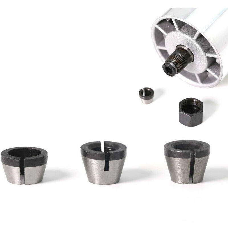 Dimensioni del mandrino: 8 mm, 6,35 mm, 6 mm (0,31 pollici, 0,25 pollici, 0,24 pollici) Si tratta di convertitori di boccole divise per molteplici scopi di compatibilità del mandrino o pinze. Materiale: realizzato in metallo duro, elevata resistenza e durezza. Trattamento termico e rettifica precisa, durevole da usare. Utilizzo: utilizzato per il taglio della conversione del mandrino, macchine per incidere, router per legno Caratteristiche: Usi: utilizzato per macchina da taglio, router per legno, conversione del mandrino della macchina per incidere Solo adattatore per mandrino a pinza, la demo di altri accessori nella foto non è inclusa . Specifiche: Materiale: acciaio al carbonio Quantità: 3 pezzi Contenuto: 3 pezzi x Adattatore per mandrino a pinza Dimensioni: come mostrato Specifiche del prodotto (peso): 10 g Quantità consegnata: 3 pezzi Applicazione: usato per cambiare il mandrino della macchina da taglio e della macchina per incidere. Nota: i fori da 1/4 (6,35 mm) sono