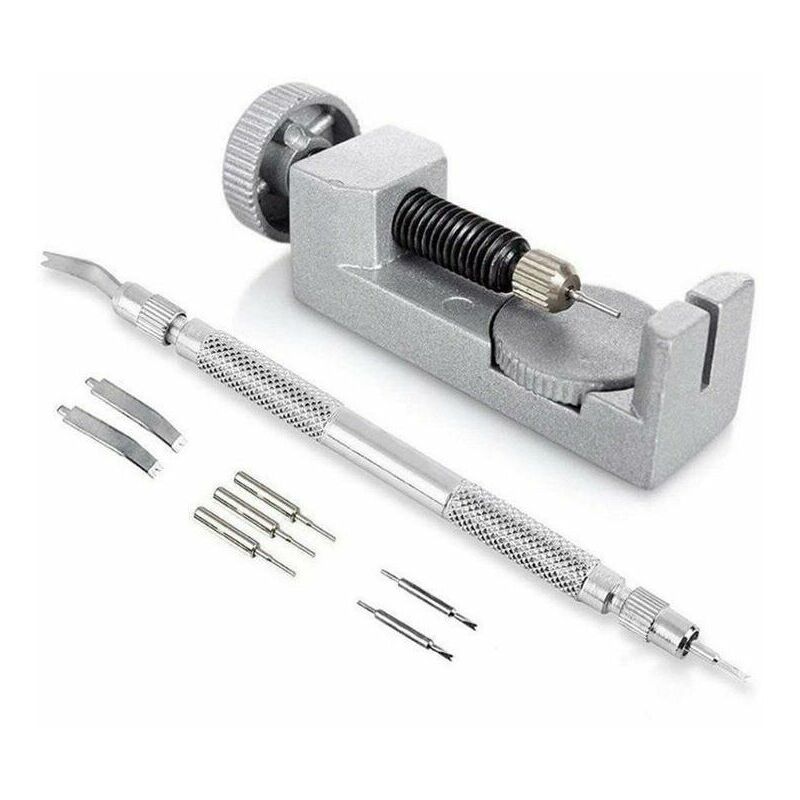 Materiale di alta qualità - Lo strumento di riparazione della catena dell'orologio è realizzato in materiale metallico, resistente e non facile da arrugginire. [Strumenti professionali] Il kit di riparazione della catena dell'orologio è uno smontaggio professionale della catena dell'orologio strumento, non danneggerà o graffierà l'orologio durante l'uso ed è facile da usare. [Anti-Shake] Il kit di riparazione del cinturino è squisitamente progettato e facile da usare. Fornisce stabilità senza tremare durante la regolazione delle dimensioni dell'orologio. [Riparazione in qualsiasi momento] Lo strumento di riparazione del braccialetto può essere riparato in qualsiasi momento per risolvere problemi come braccialetti corti o lunghi, sostituzione errata o danneggiata braccialetti. [Ampio utilizzo] Lo strumento di riparazione dell'orologio non è adatto solo per le officine di riparazione professionali, ma anche per l'uso domestico. Panoramica del pacchetto: il pacchetto dello strumento di