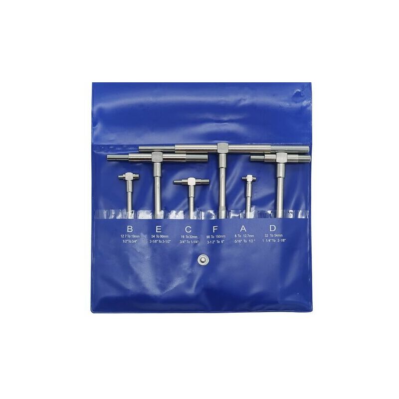 Facile da regolare per misurazioni precise. Set di utensili professionali di precisione! Le impugnature sono fissate rigidamente ai pistoni di contatto e si autocentrano automaticamente Impugnatura rigida a doppia azione con funzione autocentrante per il controllo Taglia rapidamente fori, fessure e rientranze fino a 6" di profondità Le estremità di entrambi i contatti sono in acciaio inossidabile trattato con la testa e rettificate con precisione fino a un raggio per consentire uno spazio adeguato sul foro più piccolo in cui si inserirà il misuratore. Set di 6 calibri: 5/16" - 6" (8 mm - 150 mm): calibri 8-12,7, 12,7-19, 19-32, 32-54, 54-90 e 90-150 mm Specifica: Materiale: acciaio per utensili temprato Colore: argento Intervallo:< /p> 5/16 "- 1/2", (8 - 12,7 mm) 1/2 "- 3/4", (12,7 - 19 mm) 3/4" - 1-1/4", (19 - 32 mm) 1-1/4" - 2-1/8", (32-54 mm) 2-1/8" - 3-1/2", (54 - 90 mm) 3-1/2" - 6" (90 - 152 mm) Utilizzo: Sotto una tensione uniforme della molla, lo stantuffo del manometro si