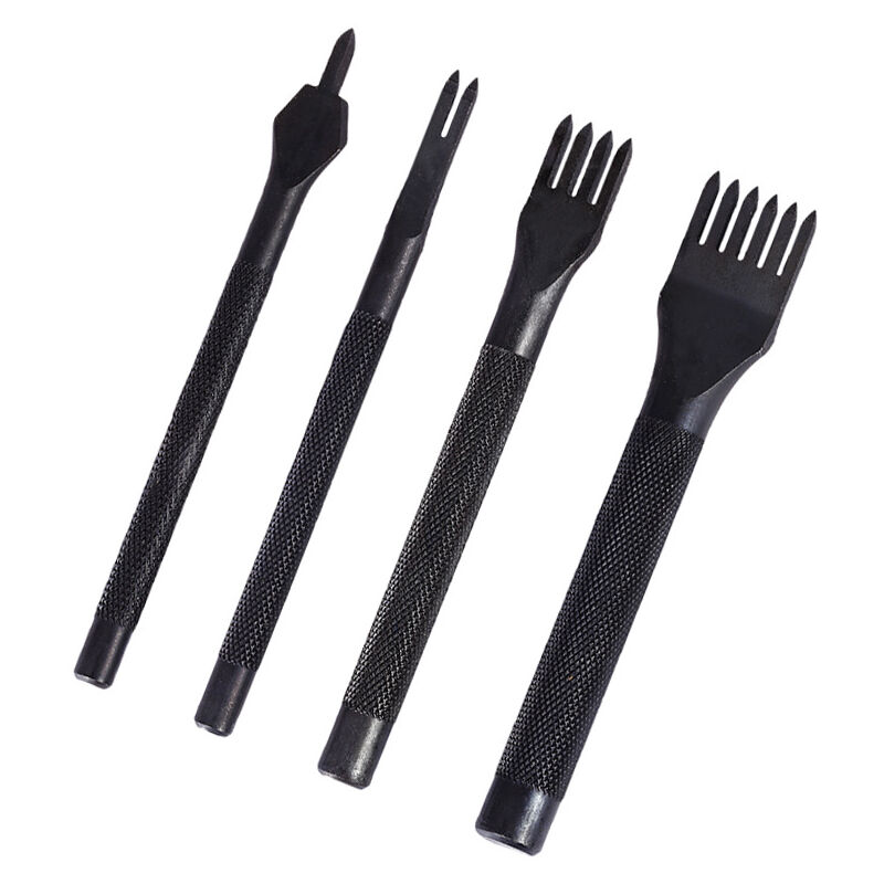 Strumenti professionali: il kit comprende 4 scalpelli di diverse quantità di artigli, articoli in pelle con un set di 1 + 2 + 4 + 6 strumenti perforatori a scalpello. Dimensioni: Larghezza dell'artiglio: Circa 2 mm, passo dell'artiglio: Circa 4 mm, colore: Nero. Impugnatura comoda: l'impugnatura lucida e liscia è facile da impugnare, il kit di scalpelli in pelle è utile per perforare rapidamente e senza sforzo. Ottima fattura: lo scalpello con denti in pelle adotta trattamento termico ad alta temperatura e processo di tempra ad alta frequenza, che rende il set di cuciture in pelle una superficie trasparente e facile da usare. Materiale di qualità: Le forbici per denti in pelle sono realizzate in acciaio ad alto tenore di carbonio di alta qualità, finemente placcato, bello e non facile da arrugginire, che è durevole. Caratteristica: 1. Acciaio ad alto tenore di carbonio di alta qualità 2. Processo di galvanica fine 3. Spegnimento ad alta frequenza della testa 4. Specifiche complete