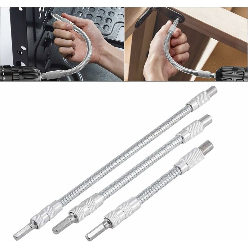 Impugnatura esagonale (impugnatura da 1/4''), testa del cacciavite da 6,35 mm (1/4), lunghezza tubo metallico 20 cm/7,9, 30 cm/11,8. Piegato di 300 gradi, può essere ruotato in diverse direzioni, facile da controllare. Professionale per raggiungere parti morte e strette, oltre al normale cacciavite, puoi raggiungere l'installazione o la rimozione di viti. L'asta morbida viene utilizzata in un luogo speciale, lavorando sulle viti con una piccola forza. Il manico del pick up è applicabile a tutti i trapani elettrici e le chiavi, la testa funzionale viene fornita con un lucchetto e il dispositivo magnetico, assicurati che la manica non cada. La testa ha un lucchetto e il dispositivo magnetico. Elevata durezza, robusto, angolo libero, portapunte flessibile flessibile facile da allentare. Può essere collegato a trapano elettrico, trapano elettrico ricaricabile o chiave manuale, stenosi, raggiungerli incapaci di arrivare alla rotazione della vite, dado. Specifica: Materiale: metallo