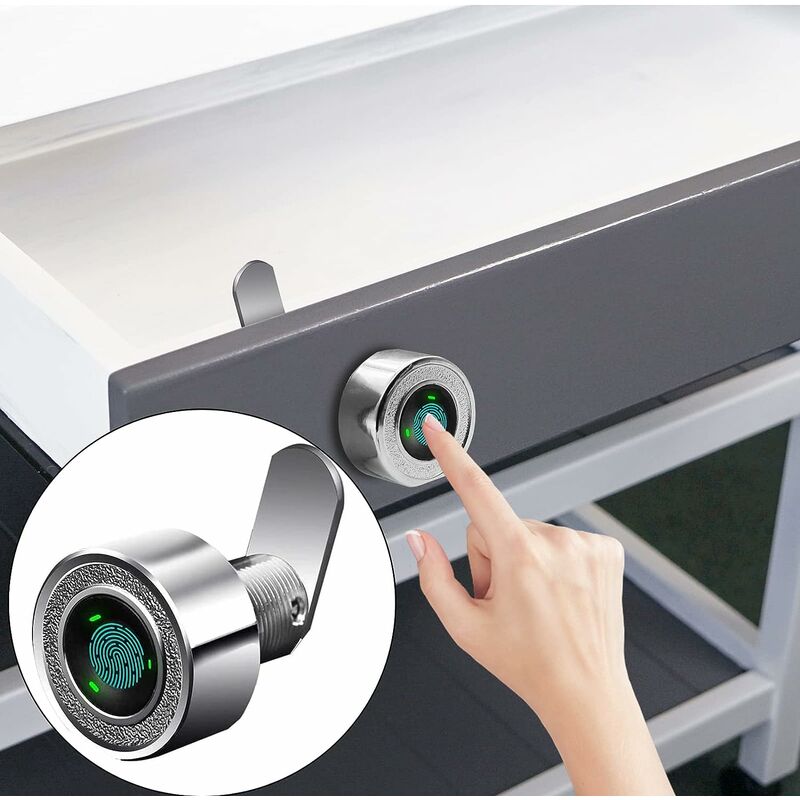 Sblocco delle impronte digitali - È possibile memorizzare 20 gruppi di impronte digitali (inclusi 2 amministratori e 18 utenti normali). Supporta il riconoscimento delle impronte digitali a 360°. La velocità di sblocco non viene utilizzata per più di 0,5 secondi. Usa l'impronta digitale per sbloccare, nessuna chiave o password necessaria, migliorando notevolmente la sicurezza fisica e la sicurezza della proprietà. [Modalità standby extra lunga e ricarica USB] Batteria al litio ricaricabile incorporata, 6 mesi di autonomia dopo la ricarica completa. Ha una funzione di promemoria della batteria scarica, viene fornito con un cavo USB per la ricarica, non c'è bisogno di preoccuparsi che la batteria si esaurisca. [Sicurezza e protezione antifurto] Antifurto: l'impronta digitale della custodia della serratura è realizzato in lega di zinco e la barra di bloccaggio è in acciaio inossidabile resistente alla corrosione e all'usura. Proteggi i tuoi oggetti di valore nei tuoi armadi e cassetti
