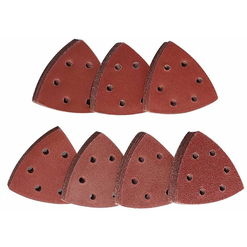 Fogli abrasivi Delta in allumina - Forte resistenza all'acqua e possono essere utilizzati sia in ambienti umidi che asciutti, l'adesivo di nuova concezione migliora la resistenza all'abrasione e la morbidezza dei cuscinetti per levigatrice a delta e ha un'elevata efficienza di lucidatura, buona fattura e lunga durata. 【Dimensioni carta vetrata triangolare】Carta vetrata triangolare 90*90*90mm, con 6 fori per l'aspirazione della polvere - Previene l'intasamento della levigatrice triangolare - Ideale per levigatrici DELTA, per levigatrice triangolare, levigatrice triangolare abrasiva. < p> 【Supporto】 Foglio abrasivo triangolare Fogli abrasivi a strappo, facili e veloci da incollare, robusti, durevoli e pratici, platorello triangolare buona scelta per levigare e lucidare. 【Miscela di 70 tamponi di carta vetrata】 Carta vetrata Delta 90 Ogni confezione contiene 70 platorelli abrasivi triangolari, 7 gradi da grossolani a fini, 10 grani 60/80/120/180/240/320/400, soddisfano quasi tutto Es le