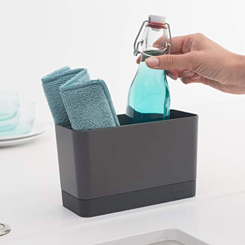 Brabantia Sink Side Organizer per Lavello, Dark Grey, 8.5 x 19 x 11.5 cm & Sink Side Set Panni Pulizia, Microfibra, Grigio (Dark Grey), 30 x 30 x 0.5 cm, 2 unità