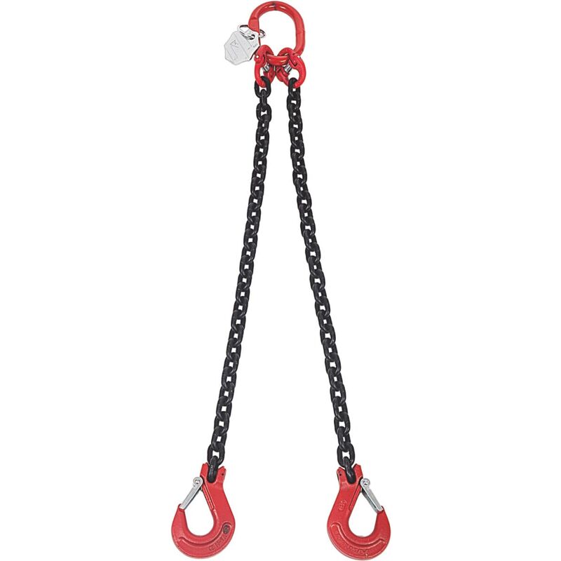 Catene di ancoraggio con punzone H (omologazione dell'associazione di categoria tedesca). Brache a catena altamente resistenti con gancio e catena verniciata nera. Nota: Ulteriori misure ed esecuzioni (per esempio gancio di sicurezza) su richiesta. Dati tecnici ⌀ Catena mm 10 Portata WLL β = 0° − 45° kg 4250 Portata WLL β = 45° − 60° kg 3150 Tipo di prodotto Catena di ancoraggio Lunghezza utile, m 2