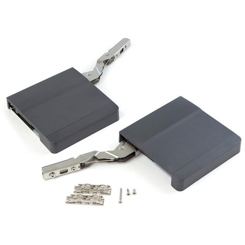 Sistema di braccetti per ante sollevabili nei mobili della cucina e della casa. Si distinguono per il funzionamento regolare e preciso, senza la necessit� di cerniere nel montaggio . Non necessita di alcun attrezzo per lo smontaggio dell'anta grazie al suo facile sistema a clip. � stato progettato per una larghezza di modulo fino a 1200 mm e un'altezza tra i 250 e i 500 mm. Permette di regolare la forza del meccanismo, la posizione dell'anta in tre dimensioni � 2mm e ha una chiusura soft con velocit� regolabile. Disponibile in tre tipi di resistenza per coprire una gamma pi� ampia di misure e pesi di ante da scegliere in base al risultato delle formule di calcolo. Comprende anche le coperture estetiche che sono disponibili in due colori, bianco e grigio antracite . Include anche i ganci e le viti necessari per il montaggio e uno schema di montaggio. Sistema di braccetti progettato per il sollevamento di ante con montaggio senza la necessit� di cerniere. Angolo di apertura dell'anta di