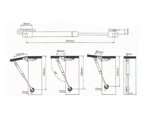 BRACCETTO a GAS molla a gas pistone di sollevamento o discesa ANTA MOBILI x247mm (Apertura verso l'ALTO, Carico 8Kg)
