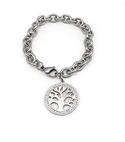 Bracciale Albero della Vita Donna | Braccialetto Portafortuna con Ciondolo | Catena a Maglie con Charm e Strass | Color Argento