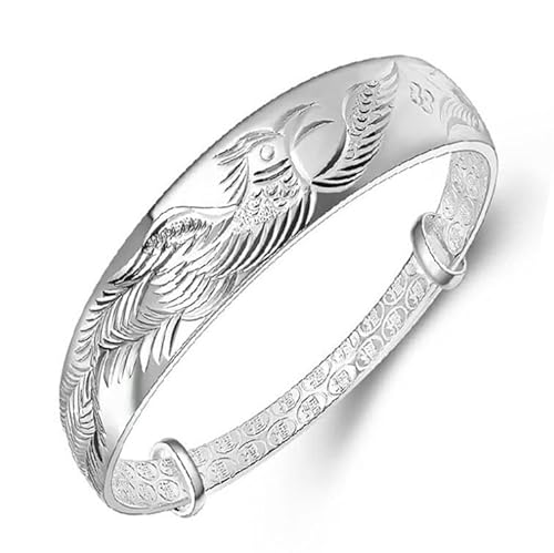 Bracciale Argento Donna,Bracciale Da Donna In Argento Sterling 925 Vintage Intagliare Fenice Bracciale Regolabile Bracciale Da Donna Gioielli In Argento Regali Di Compleanno Per Sorelle Amiche Coppi