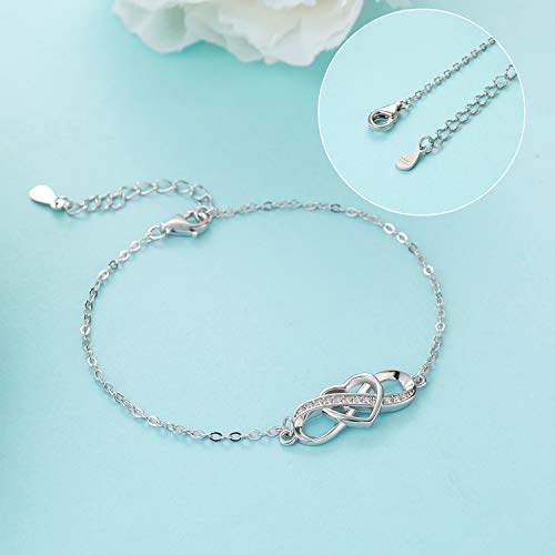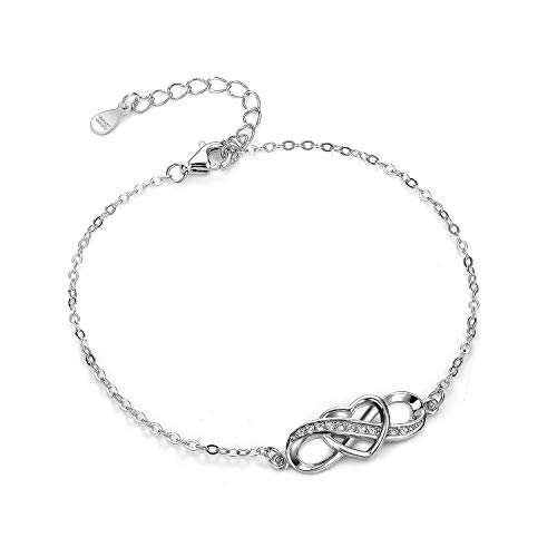 Bracciale Argento 925 Sterling Donna Signore Infinito Gioielli per Donne Ragazze Ragazza, Bracciali Vero Cuore Braccialetto Iscriviti Infinity Love Always Braccialetti Regalo per Natale di Compleanno