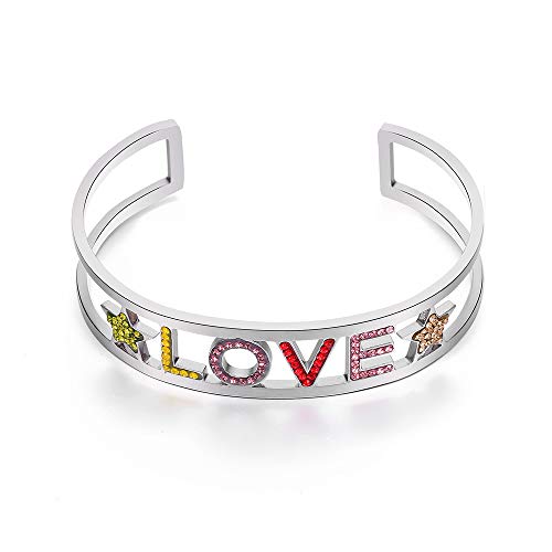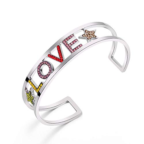Bracciale bangle per donna, bracciale in acciaio inossidabile Bracciale in oro rosa e argento con cristallo colorato regalo di charme per amici, mamma e coppia (#3 LOVE, Oro rosa)