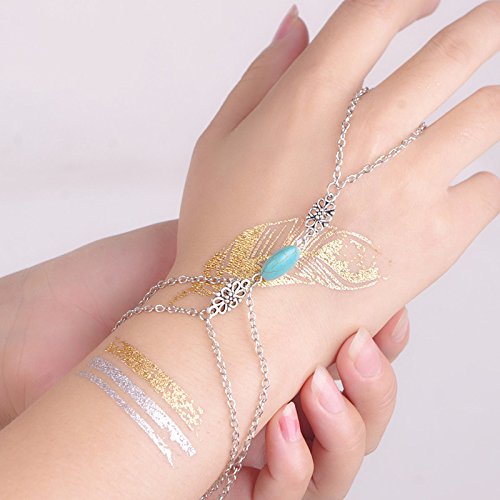 Bracciale Braccialetto Catena Mano Con Anello Di Pietra Blu Disegno per Donna Sposa