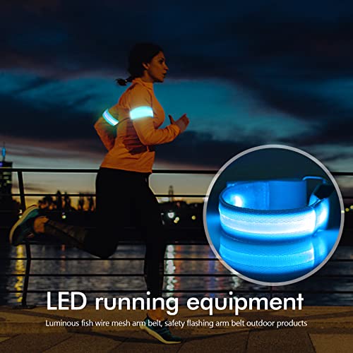 LED Bracciale Braccialetto Riflettente LED Braccialetti Leggero Banda Sicura Braccialetto Luminoso da Corsa di Ricarica USB per la Corsa Notturna All'aperto Sport Quattro Modalità Blu( 2 Pezzi)