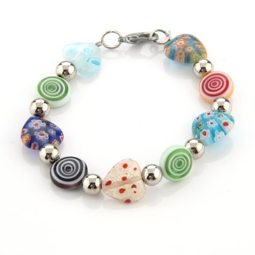 Bracciale braccialetto in vetro murano forma cuore colorato