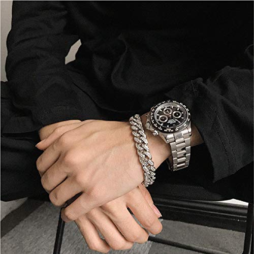 Bracciale Catena Maglia Cubana Bracciale Cordolo Catena d'Argento Uomo Iced Out Braccialetto Collegamento Hip Hop Collane Bracciali Uomo Catenina Cubano Miami Con Strass Trasparenti Per Uomo e Donna