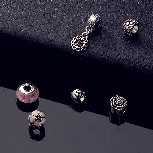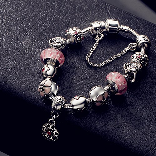 A TE® Bracciale Charm Beads Fiori di Vetro Smalto Catena Sicurezza Regalo Donna 18cm/20cm#JW-B107 (Rosa-18cm)