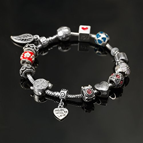 A TE® Bracciale Charms Beads cristalli Ceramica Blu Rosso Regalo Fersta della Mamma SKU:JW-B74