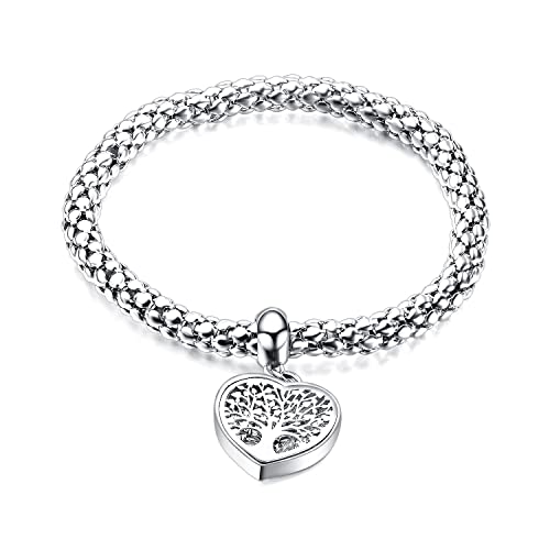 Bracciale con ciondolo albero della vita per donna, bracciale elasticizzato pop-corn Bracciale elastico in acciaio inossidabile placcato oro rosa con ciondolo a cuore con zirconi (placcato argento)