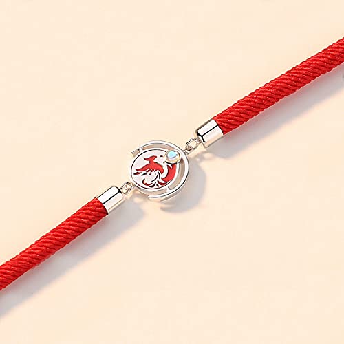 N/A Bracciale Coppia Drago e Fenice in Argento Sterling 925 Intrecciato Semplice Corda Rossa Regalo commemorativo Corda a Mano retrò