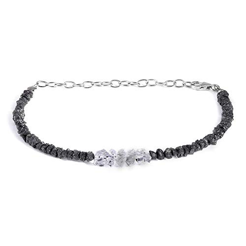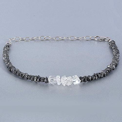 Bracciale con diamanti neri grezzi Herkimer genuino diamante grezzo, bracciale con diamanti nati aprile.