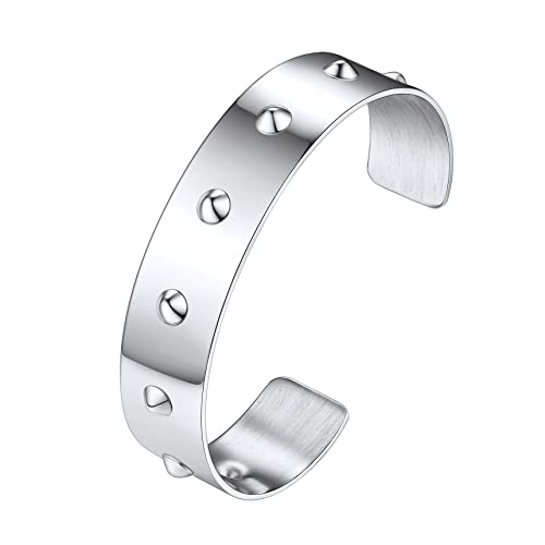 Bracciale Donna Aperto Rigido Bracciale Dorato Donna Rigido Acciaio con Rivetto, Regalo per Mamma Moglie Ragazza Anniversario Confezione Regalo