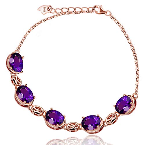 Bracciale da donna in argento sterling 925 Bracciale in cristallo ametista viola placcato oro rosa per ragazze Donna Mamma
