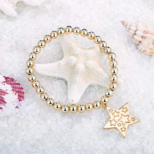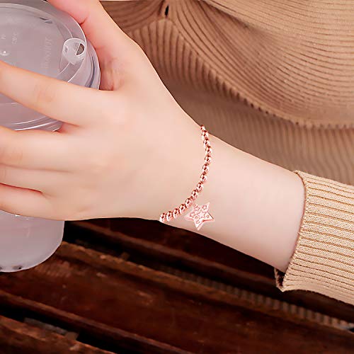 Bracciale per Donna Ciondolo a Stella Singola Oro Argento Oro Rosa Catena con Perline Elastiche Regalo di Compleanno per Ragazza