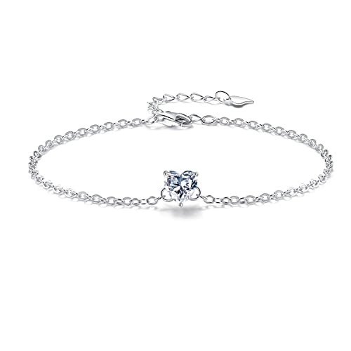 Bo&Pao Bracciale da Donna con Cuore, in Argento 925, con Zirconi a Forma di Cuore, 21 cm, regolabile