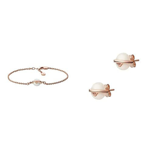 Bracciale Donna Emporio Armani In Oro Rosa E Argento, Lunghezza Interna 160 mm + 20 mm + Orecchini Donna Emporio Armani in Acciaio Inossidabile