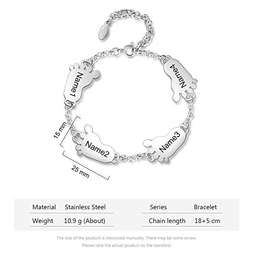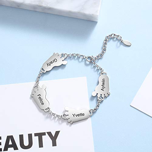 Bracciale Donna Personalizzato con 2/3/4 Nome Incisione con Ciondolo Piede Bambino Bracciali Acciaio Incisi Personalizzati Regalo per Madre Figlia (4 Nome)