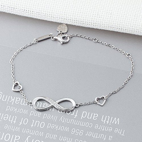 Bo&Pao Bracciale Donna con Simbolo Infinito e Cuore in Argento Sterling 925, con zirconi, 21 cm regolabile