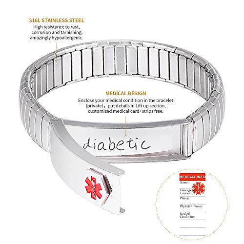 Bracciale elastico in acciaio inossidabile con avviso medico, personalizzazione da uomo e da donna, regalo salutare (tessera medica personalizzata + adesivo gratuito)
