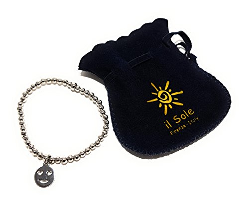 Bracciale elastico con palline ottone galvanica colore rodio e pendente cuore emoji LOVE