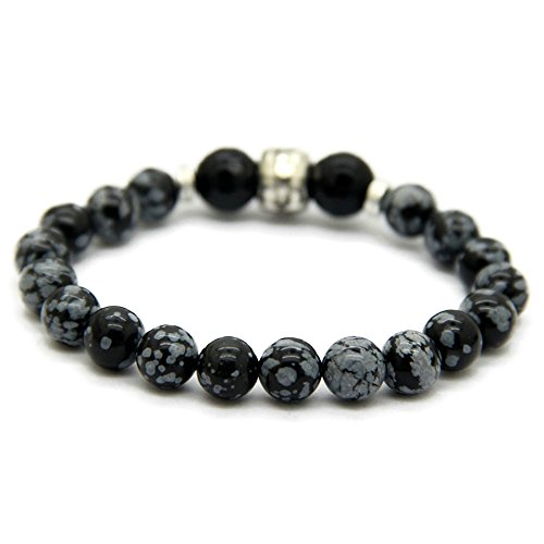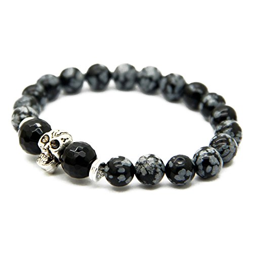 Bracciale Elastico in Pietra Naturale con Teschio Uomo Donna (Fiocco di Neve)