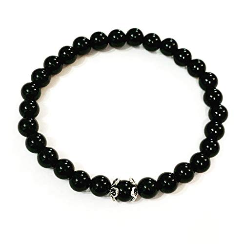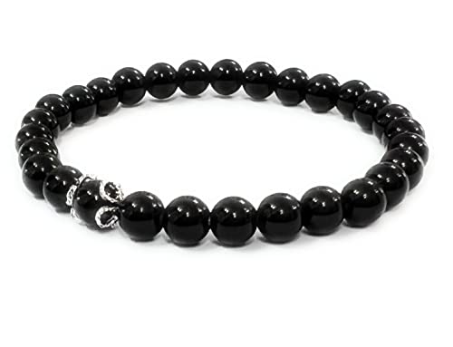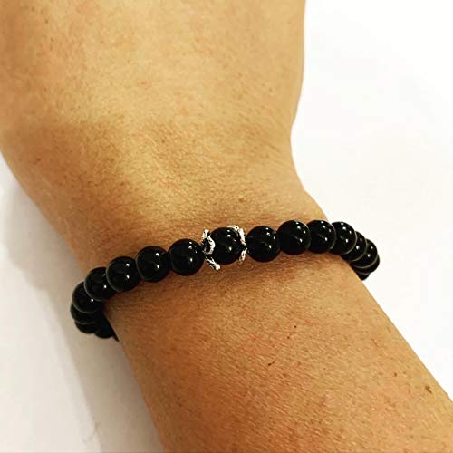 Bracciale elastico con pietre in onice nero e SU COCCU centrale, Argento brunito, portafortuna/amuleto tipico Sardo