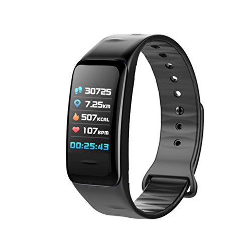 Bracciale fitness HR con display a colori, funzioni di monitoraggio dell'attività fisica, della frequenza cardiaca e della pressione sanguigna, contapassi, GPS, notifiche chiamate, messaggi e social network, compatibile con Android e iOS