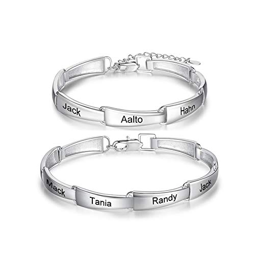 Bracciale Incisione Personalizzato per Uomo Donna BFF in Acciaio con 1~8 Nome Incisione Coppie Braccialetti Incisione Regalo di Compleanno Anniversario (Ladies (7,5 + 2 pollici))