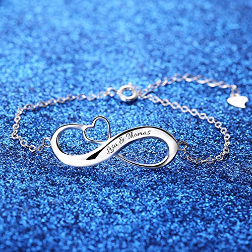 Bo&Pao Bracciale Infinito con Incisione, in Argento 925, con Segno dell'infinito, Bracciali Donna Personalizzati