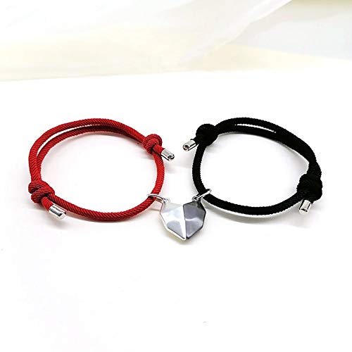 Bracciale Intrecciato,2Pcs Cuore Desiderio Magnete Pietra Ciondolo Intrecciato A Mano Nero Rosso Braccialetto Di Fascino Regolabile Regalo Di Amicizia Fortunato Per Ragazzo Ragazza Coppie Uomini Don