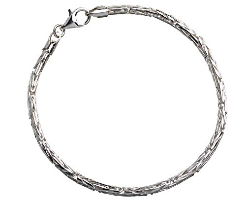 Bracciale a maglia bizantina, rotondo, in argento 925, larghezza 3 mm, lunghezza a scelta da 16 cm a 25 cm e Argento, cod. 1230