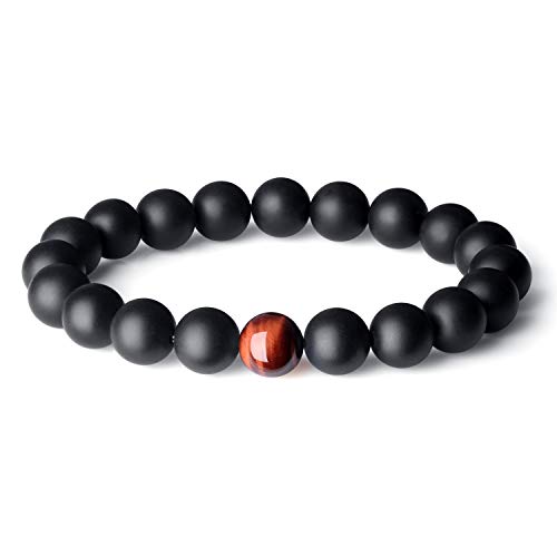 Materiale e taglia: onice e occhio di tigre rosso 10mm,adatto a polsi di 16-18mm