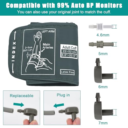 Bracciale Misuratore Pressione 22-52 cm Bracciale Pressione Sanguigna per Misuratore di Pressione Bracciale Misuratore di Pressione Sanguigna da Braccio con 4 Giunti Extra(Grey)
